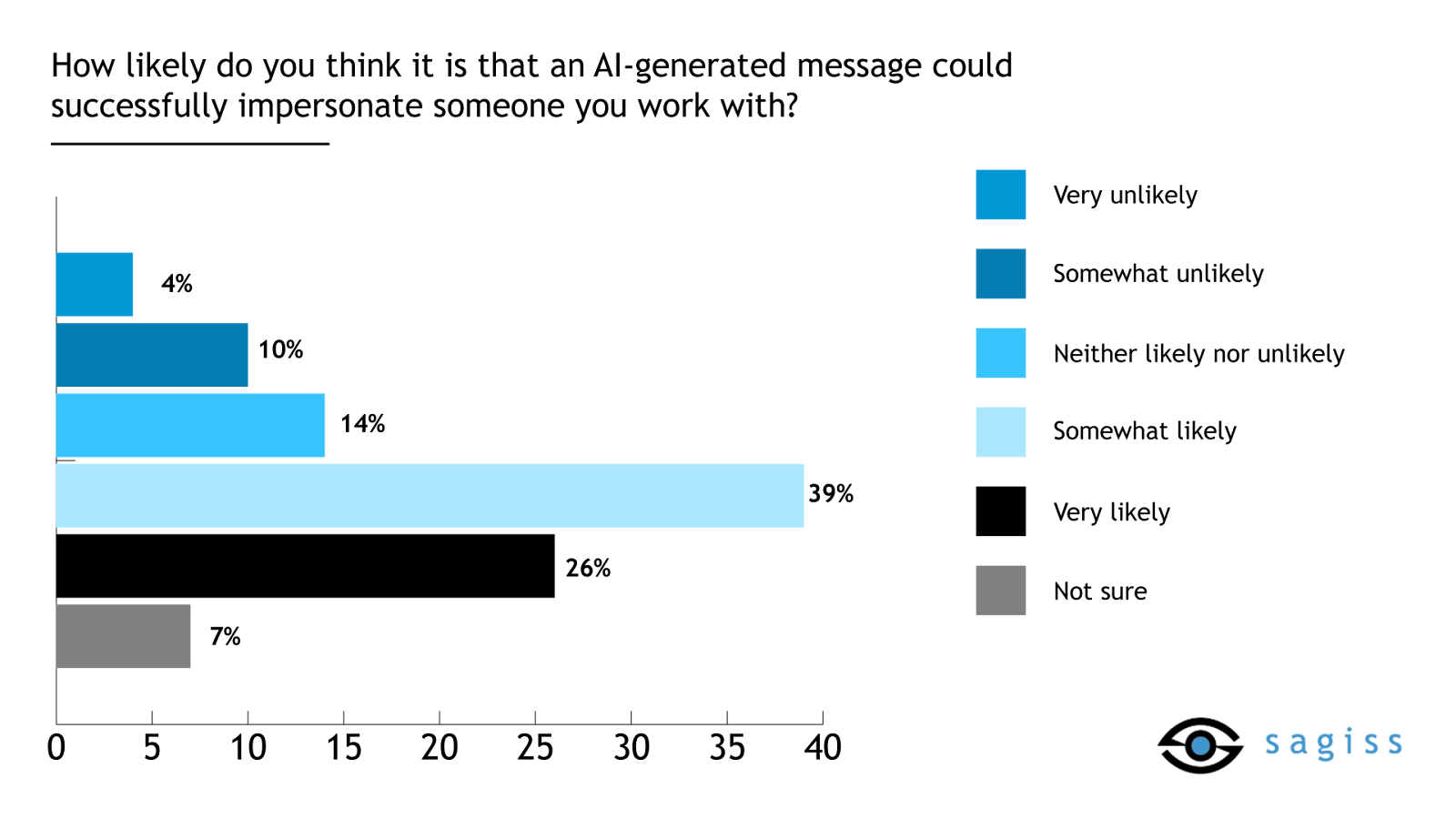 39% say it is somewhat likely that an AI-generated message could successfully impersonate someone they work with.
