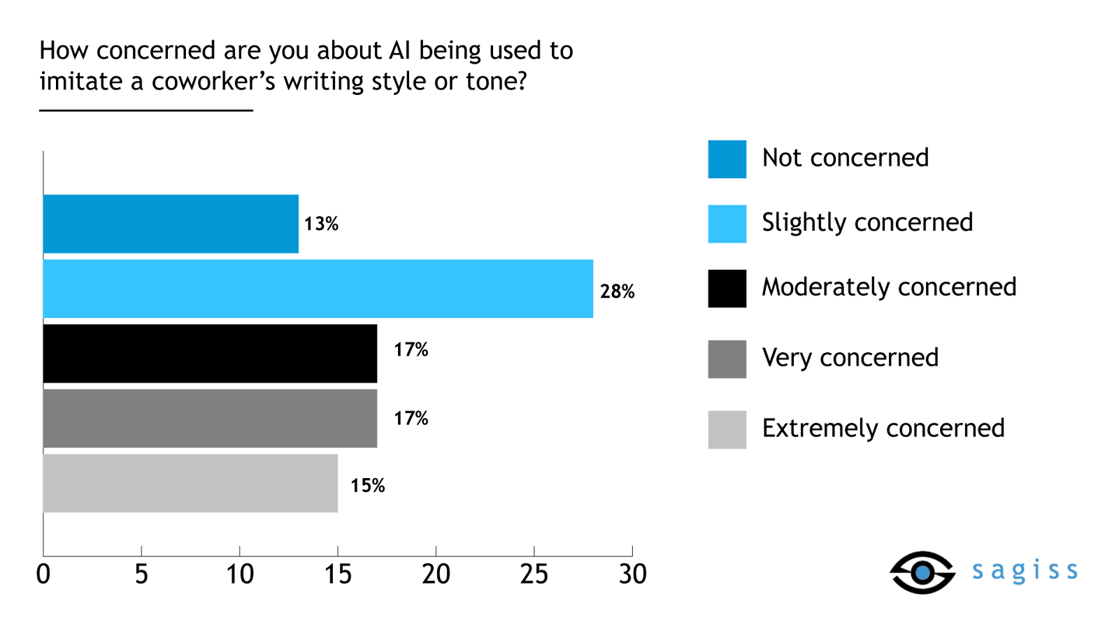 28% say they are slightly concerned about AI being used to imitate a coworker’s writing style or tone.