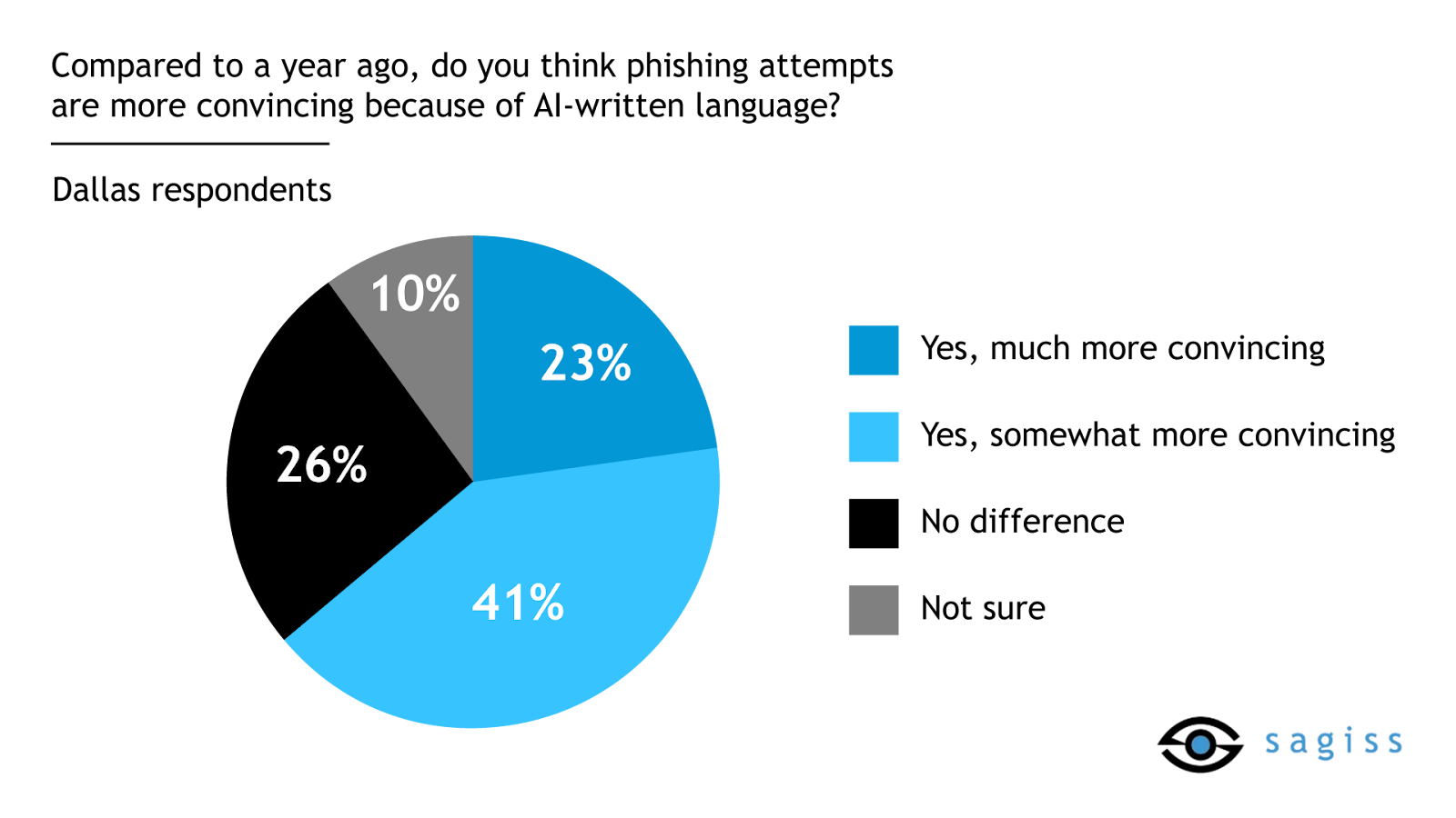 41% of Dallas respondents phishing attempts are somewhat more convincing than a year ago because of AI-written language