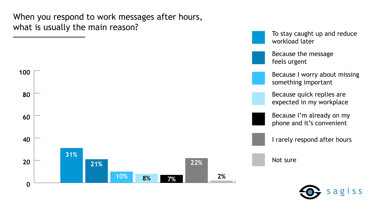 31% say they respond to work messages after hours to stay caught up and reduce workload later.