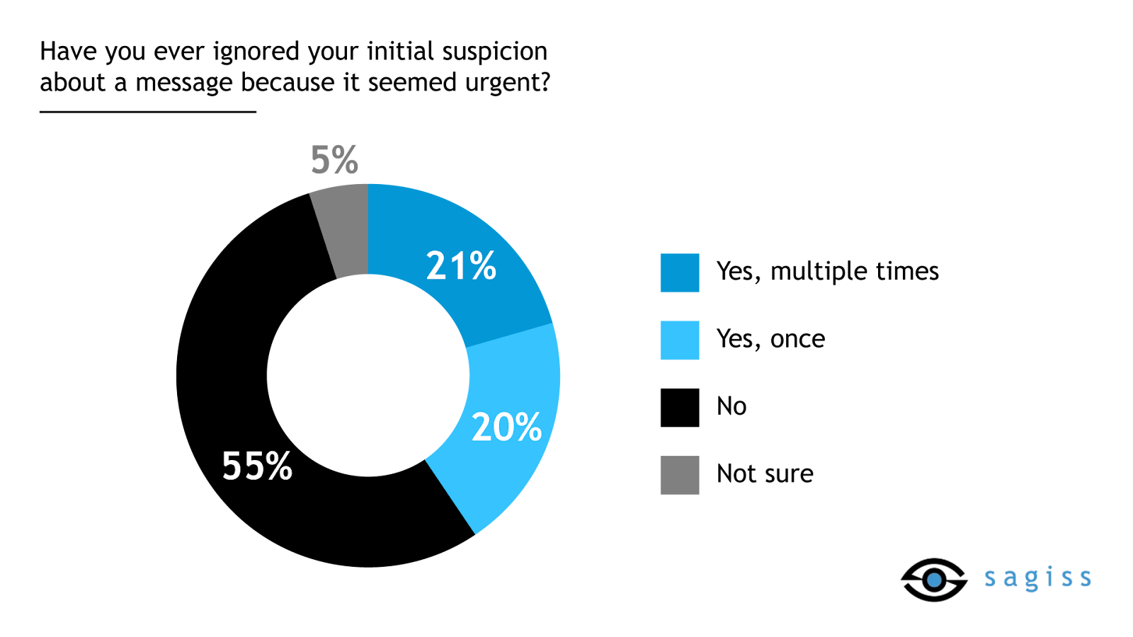 55% say they have never ignored their initial suspicion about a message because it seemed urgent.