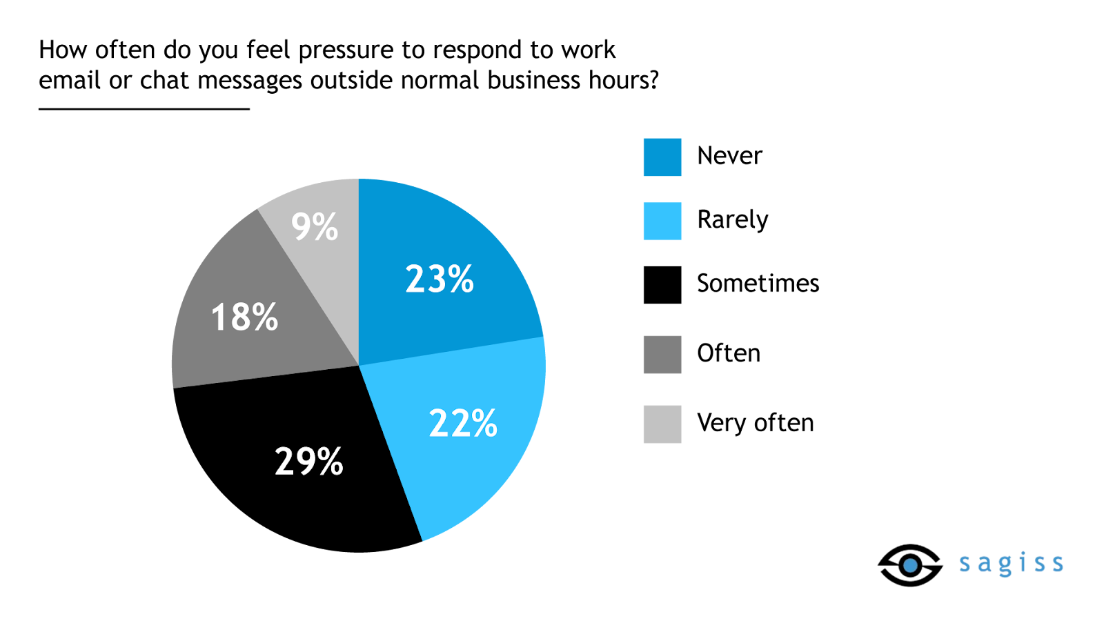 29% say they sometimes feel pressure to respond to work messages outside normal business hours.